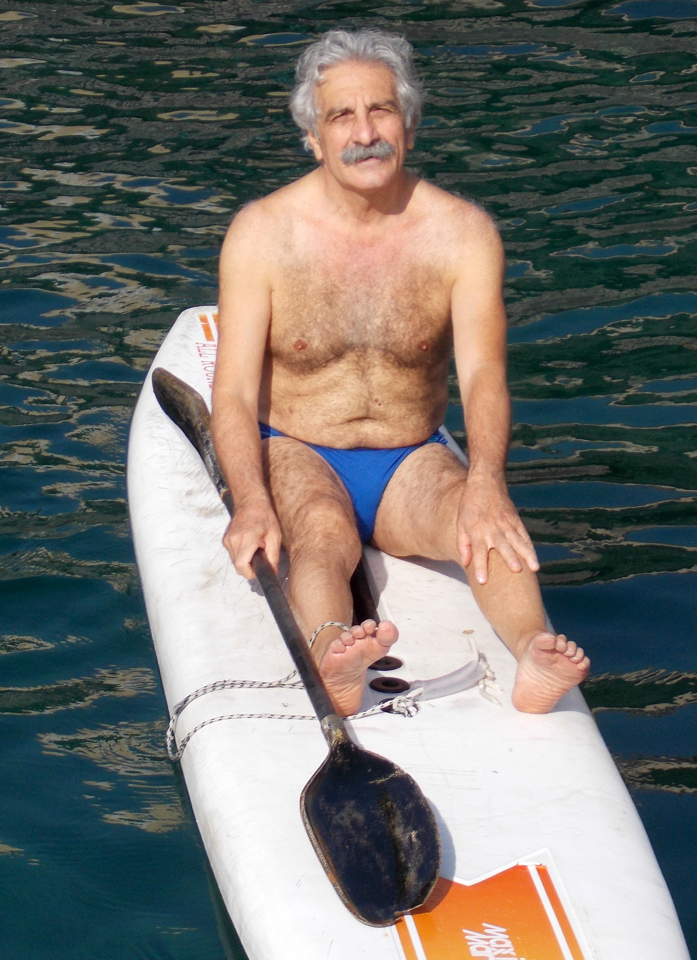 Angelo Restivo – Classe 1945 – Professore, ora in pensione – E’ un frequentatore assiduo di S.G. da alcuni decenni, ma fino a qualche giorno fa ci limitavamo ad un saluto di cortesia. Poi gli ho proposto di fare l’escursione e, dopo un iniziale tentennamento, ha accettato. Mai pagaiato in vita sua ma, in pochi minuti, ha capito tutto, diventando un maestro. -PENSUCACIPIACIUASSAI-